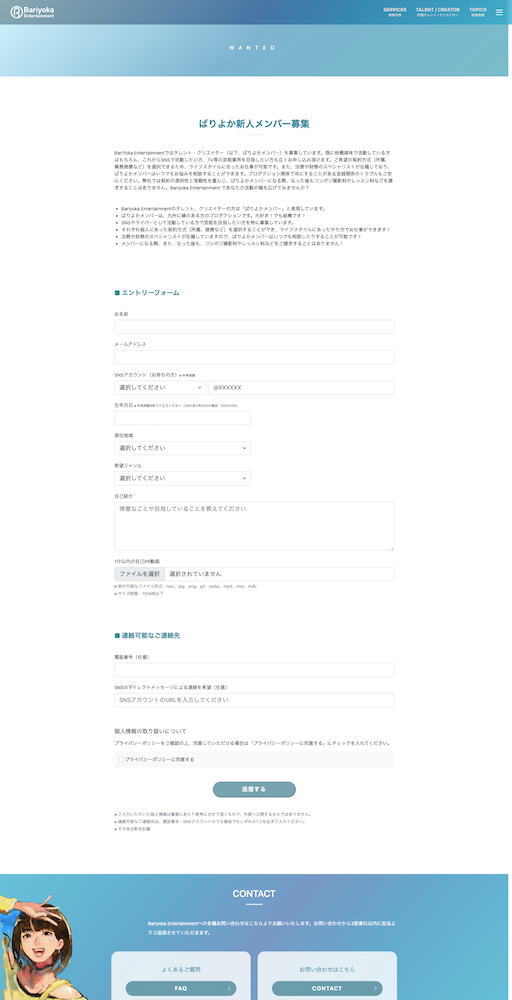 Bariyoka Entertainment 株式会社 様 ホームページ制作実績