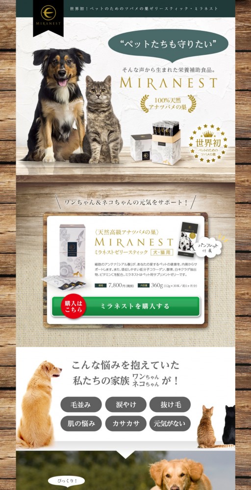 ペット用 天然高級アナツバメの巣サプリメント ミラネスト ランディングページ制作実績