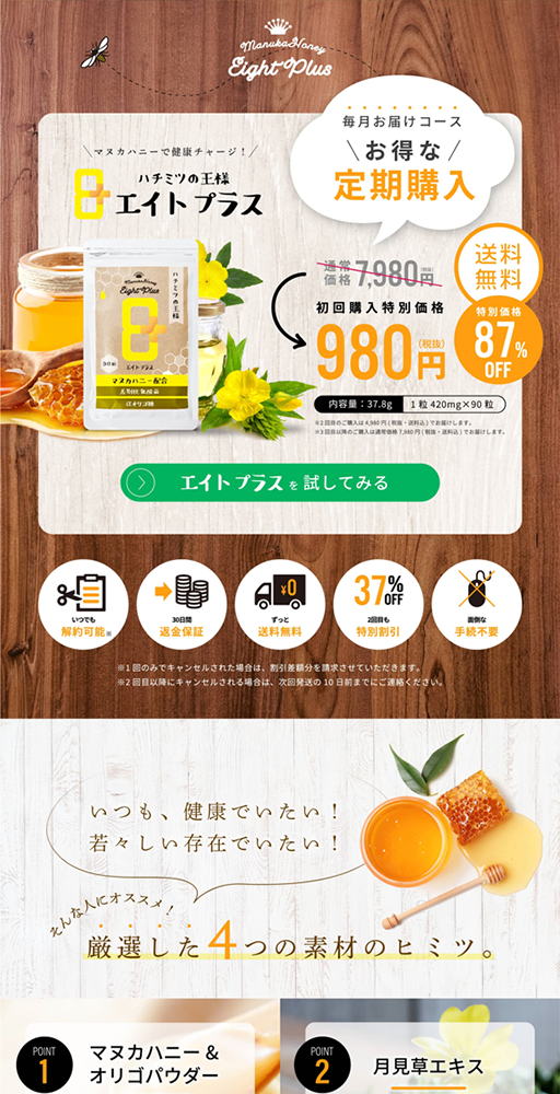 株式会社HIGGS Organic 様「ハチミツの王様 エイトプラス」 ランディングページ制作実績